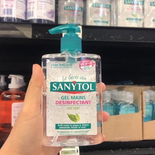 Nước rửa tay Sanytol Gel Mains hương trà xanh của Pháp
