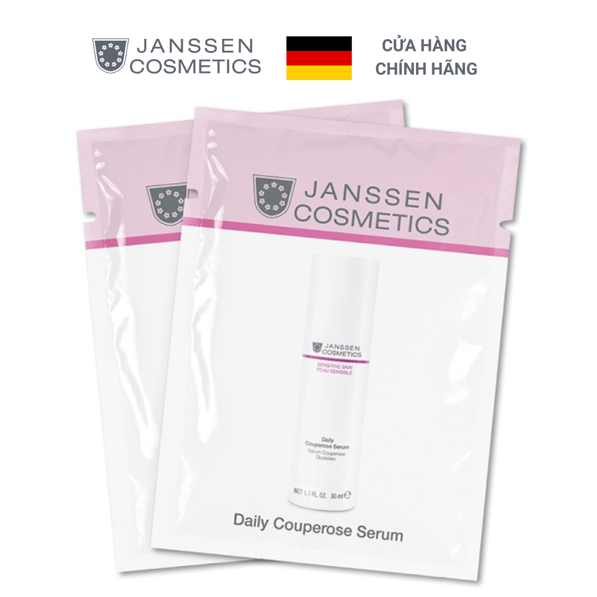 Janssen Cosmetics Daily Couperose Serum được phát triển đặc biệt cho làn da nhạy cảm bị đỏ và telangiectasia (da xuất hiện mạch máu nhỏ). Serum chăm sóc da giãn mao mạch hàng ngày cũng phù hợp cho việc chăm sóc bệnh hồng ban nhẹ.
