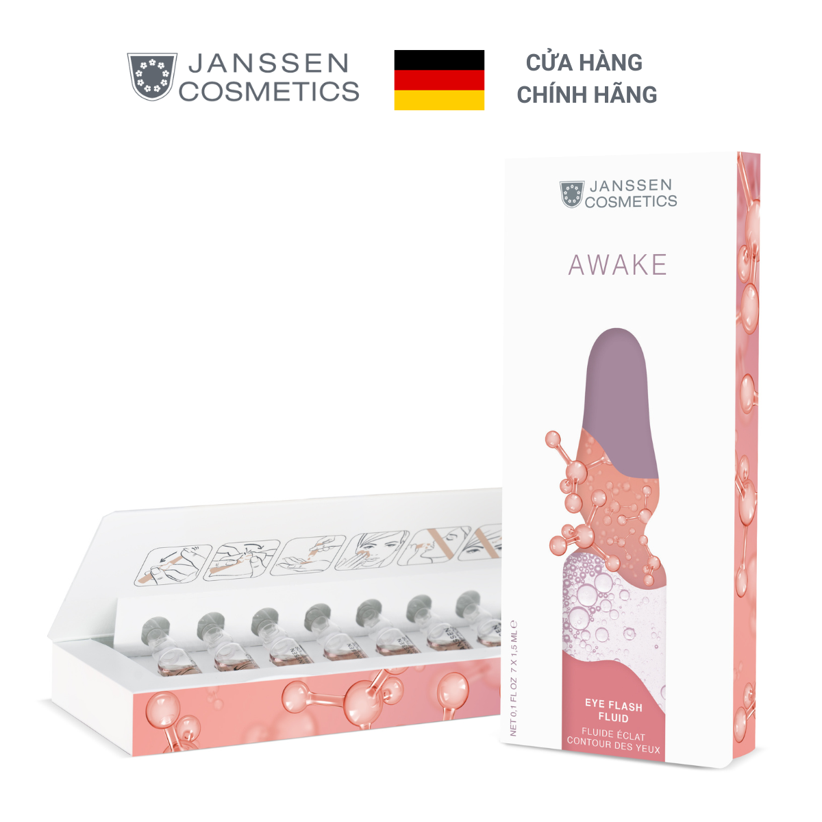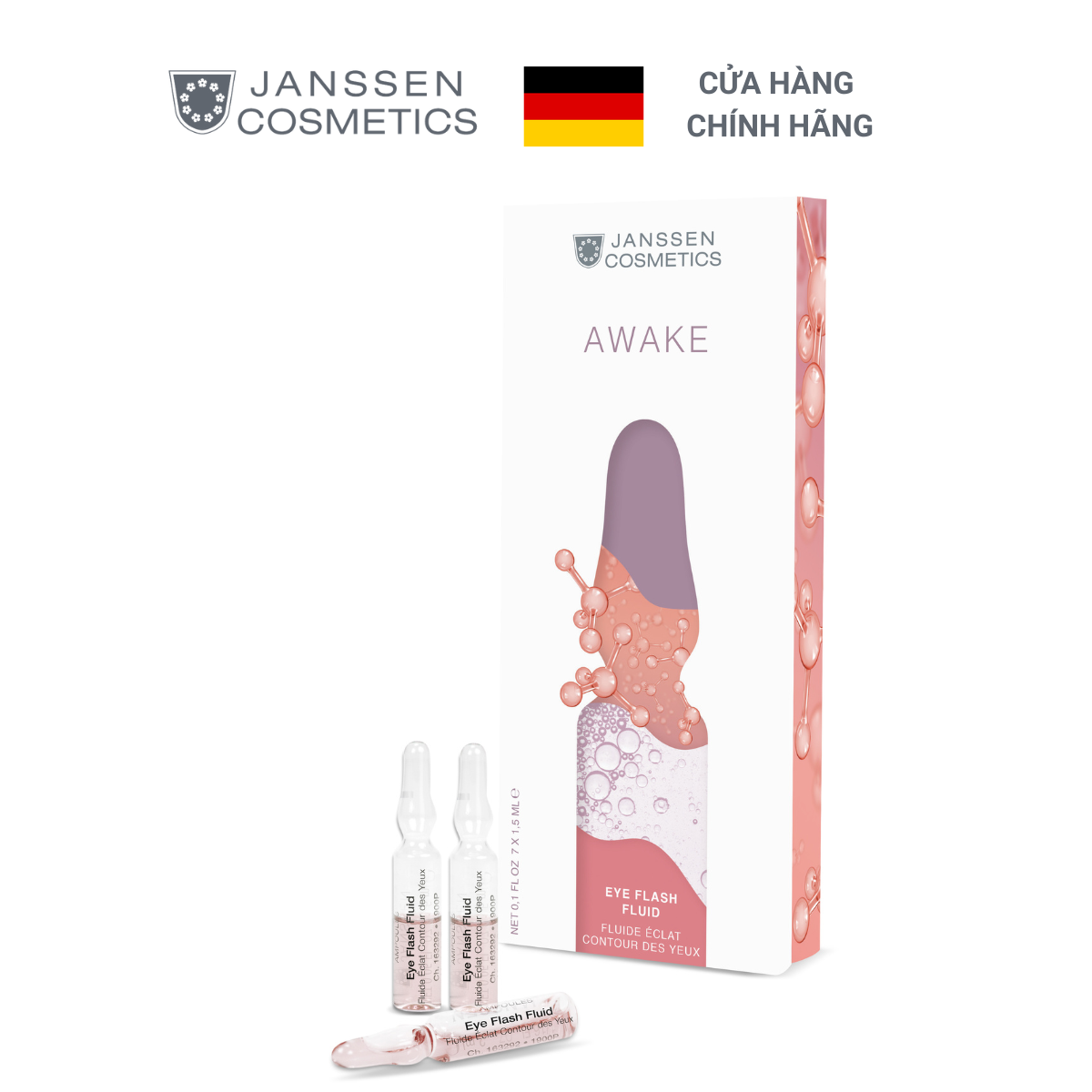 - Janssen Eye Flash Fluid giảm sưng, xóa tan bọng mắt, giảm thâm quầng mắt, mang đến vẻ tươi trẻ cho đôi mắt.